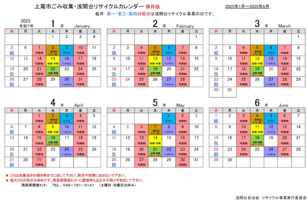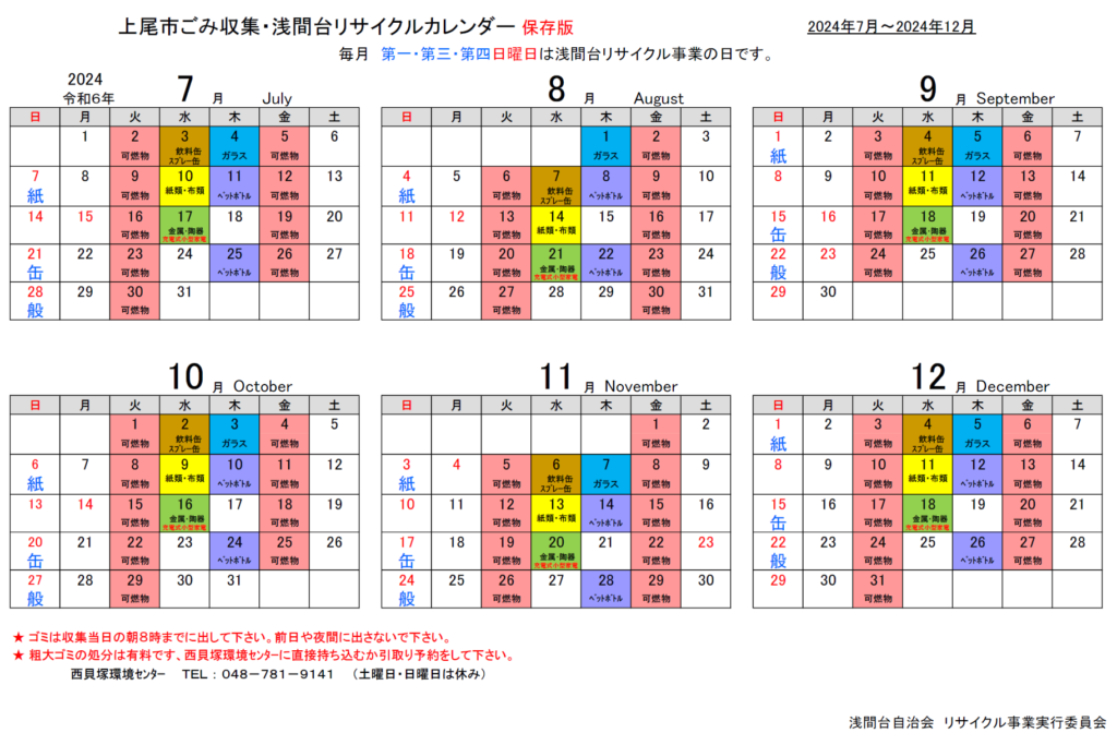 上尾市ゴミ回収・浅間台リサイクルカレンダー