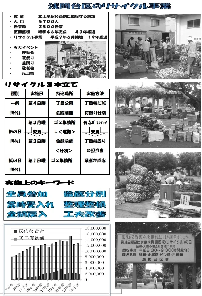 浅間台自治会会では環境美化部を中心に区民の皆様のご協力のもと、区内の環境・衛生整備事業、リサイクル(家庭内資源回収)事業の推進、クリ-ン運動の推進を中心に活動おこなっております。